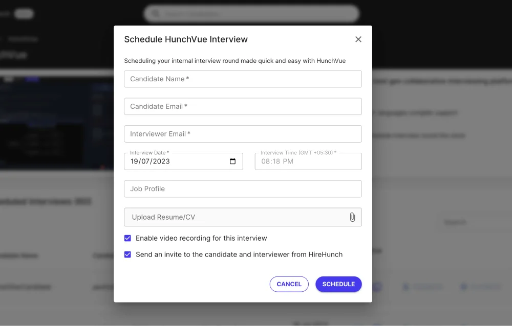 With just a few clicks, you can easily schedule interviews with your shortlisted candidates. It's time to sit back, relax, and let HireHunch make interview scheduling a breeze.