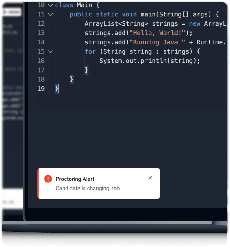 Get instant notifications on the candidates movements ensuring a fair and secure interview environment. Proctoring alerts have never been so cool.