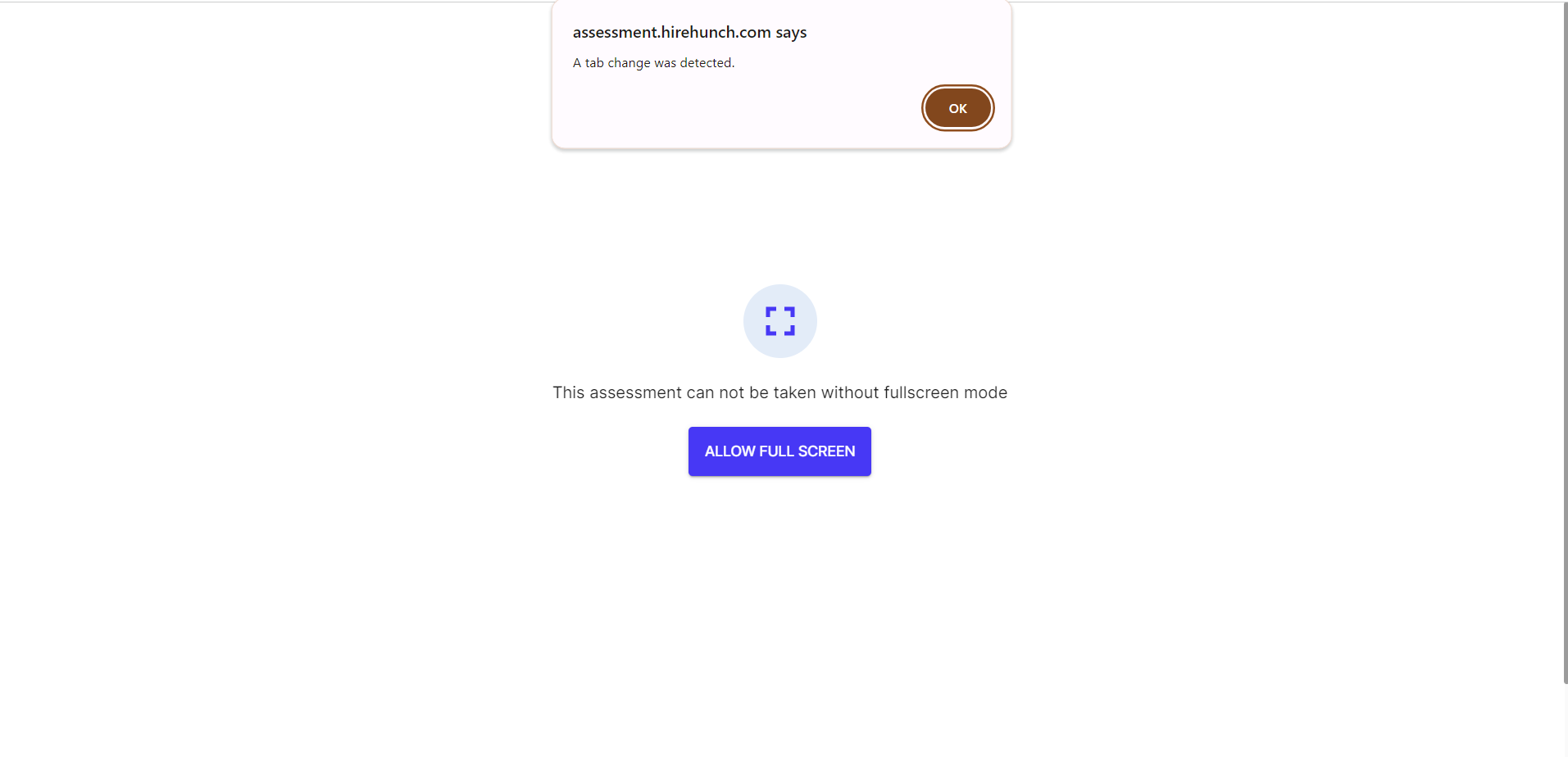 • Your camera must be on, and please ensure you don’t leave or switch browsers during the assessment.