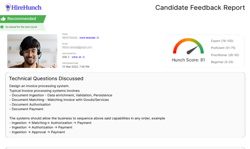 We are recommending this level based on your professional work experience. This is a critical data point cause we assign you the perfect interviewer who’ll be able to assess you and interview you based on your experience level, just like how it will be in the real world.